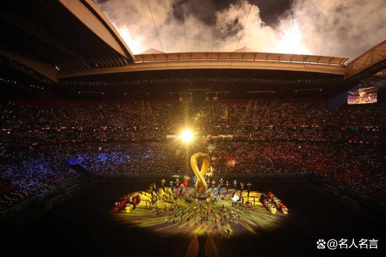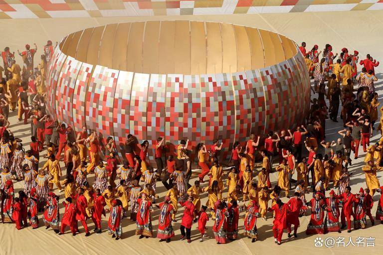 在世界杯A组卡塔尔队对阵厄瓜多尔队的比赛开始前,开幕式的表演正在进行。舞者们尽情献艺,这是当时体育场内的全景盛况。